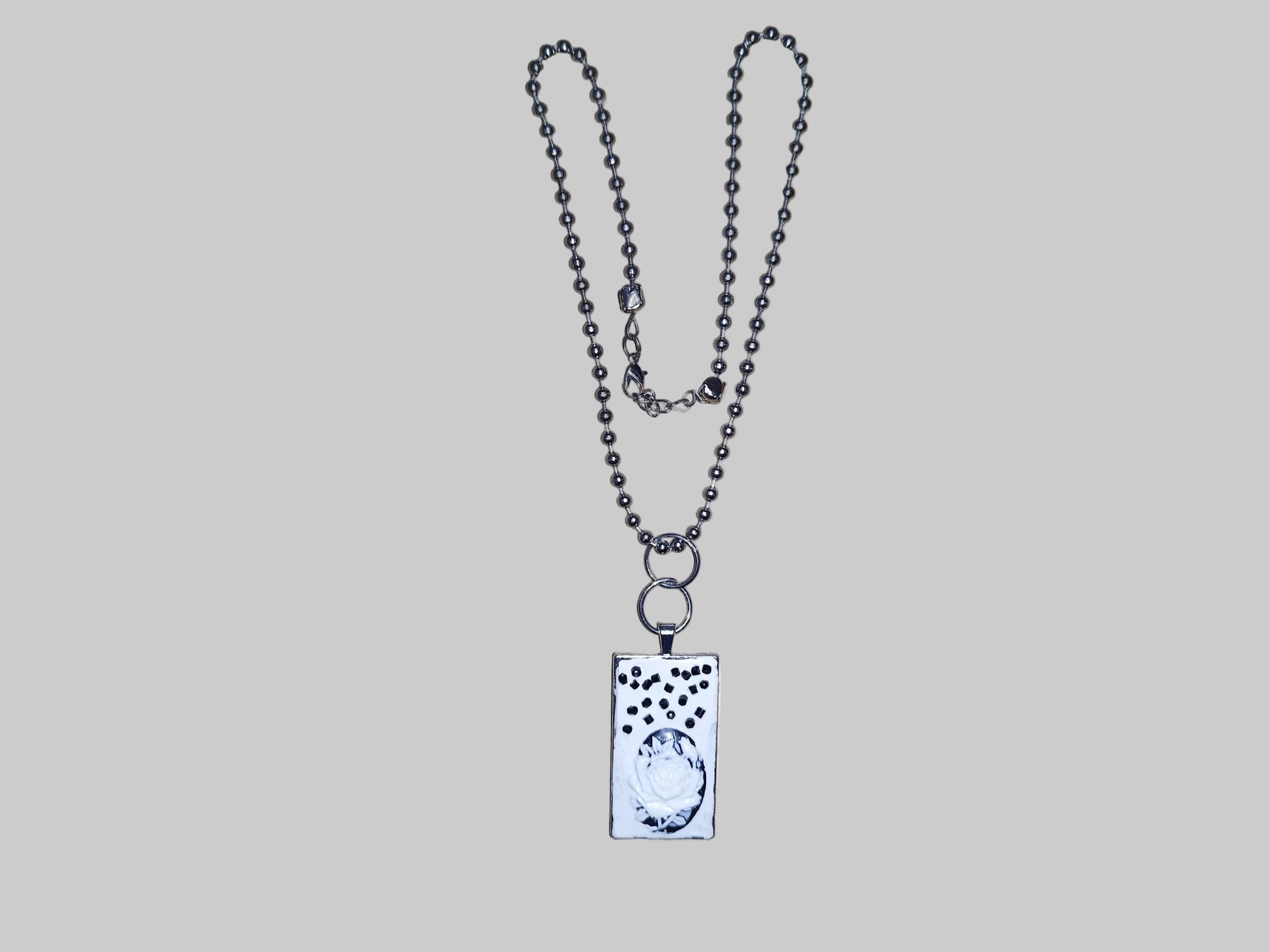 Χειροποίητο κόσμημα από τσιμέντο σε μεταλλικό καστόνι με διακοσμητικό λουλούδι.