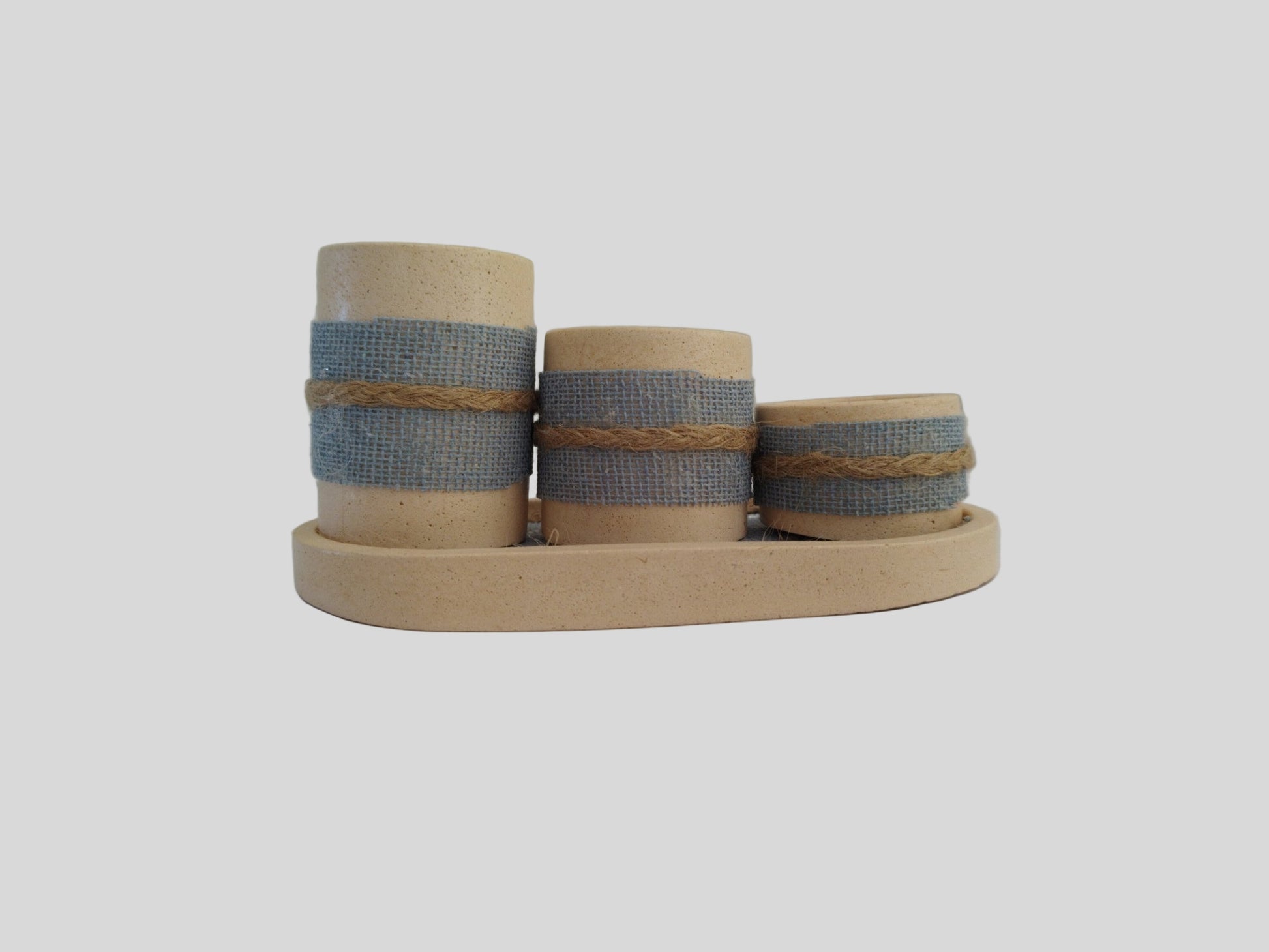 Κάθε κομμάτι είναι μοναδικό λόγω της χειροποίητης κατασκευής. Η τριπλή σύνθεση δημιουργεί ισορροπία και οπτικό ενδιαφέρον.
