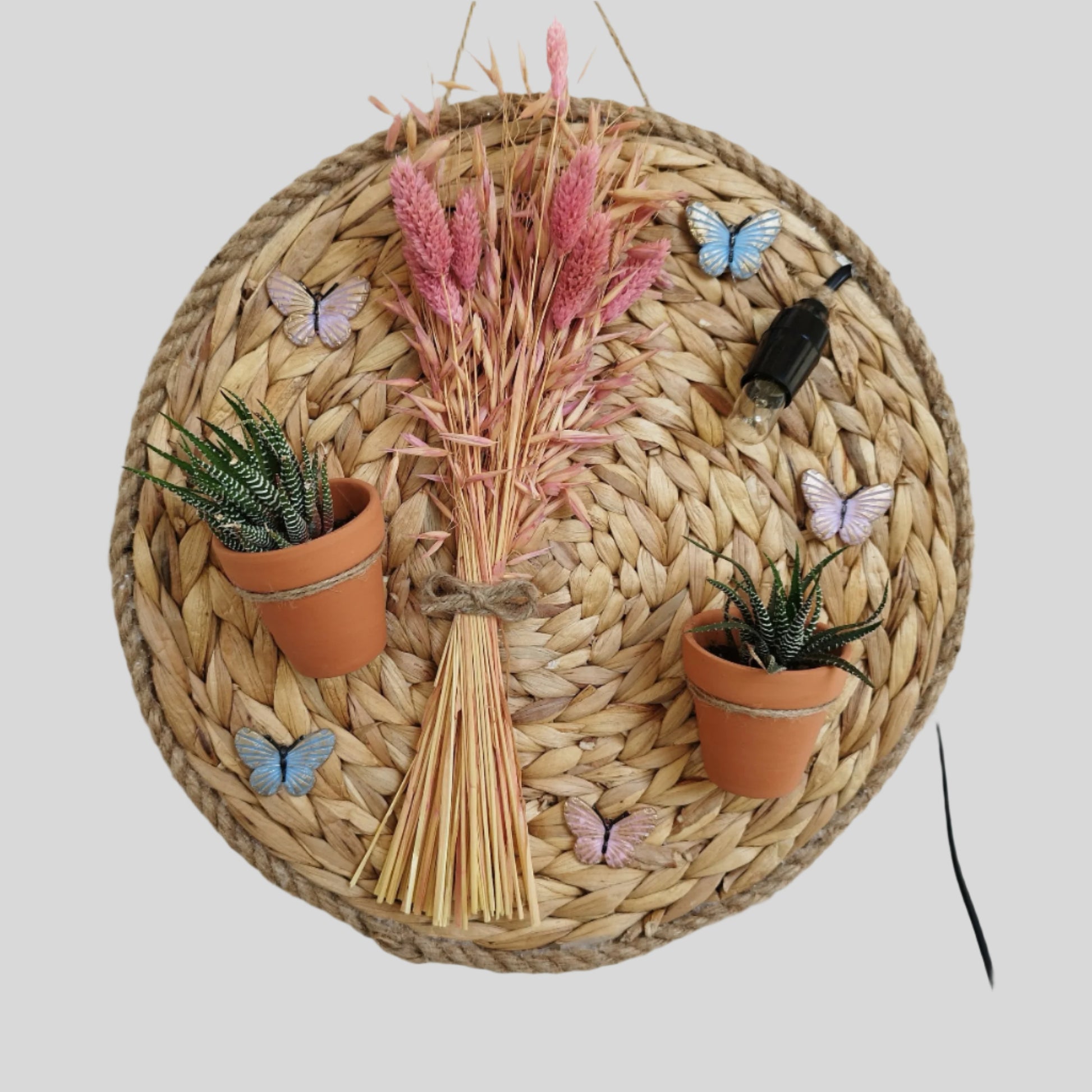 Boho xειροποίητο φωτιστικό που συνδυάζει παχύφυτα και αποξηραμένα λουλούδια, για μια ζεστή και μοναδική ατμόσφαιρα στον χώρο σου.