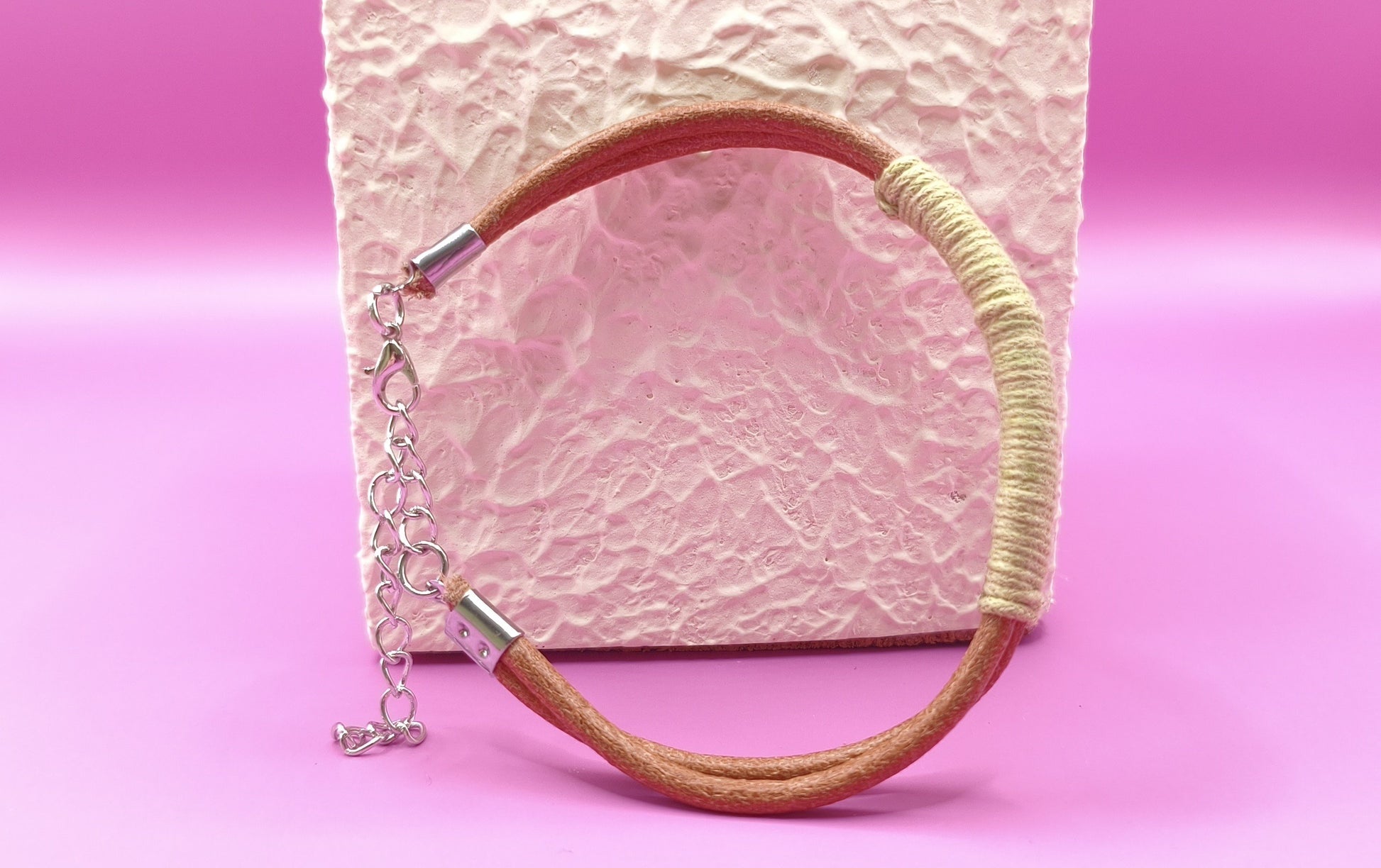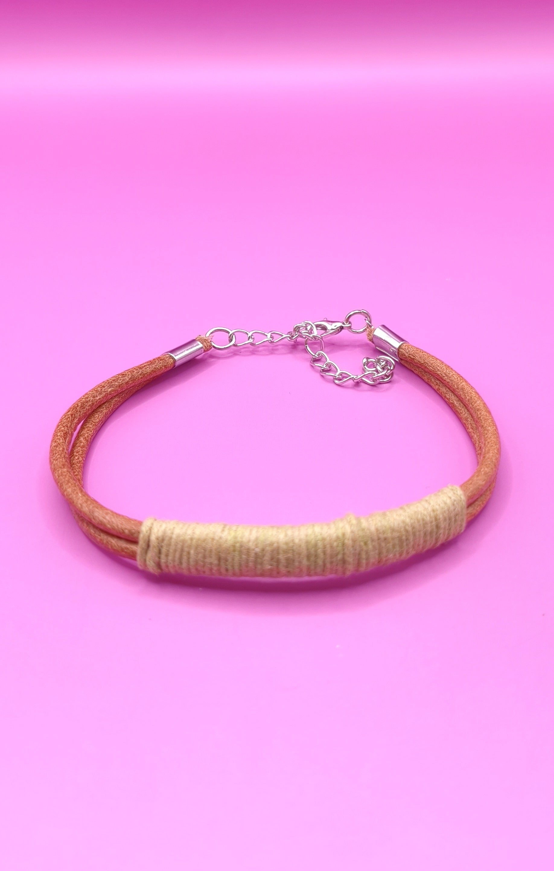 Απλό χειροποίητο βραχιόλι με δερμάτινο λουράκι και πράσινο σχοινί