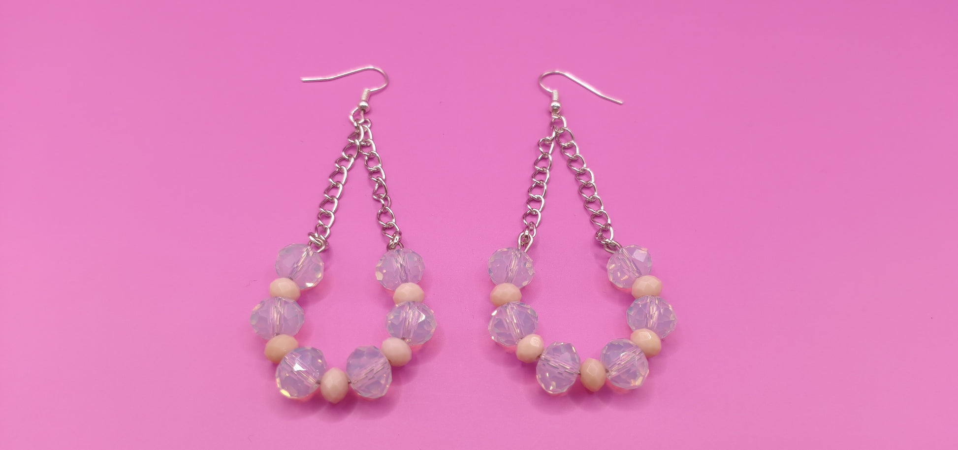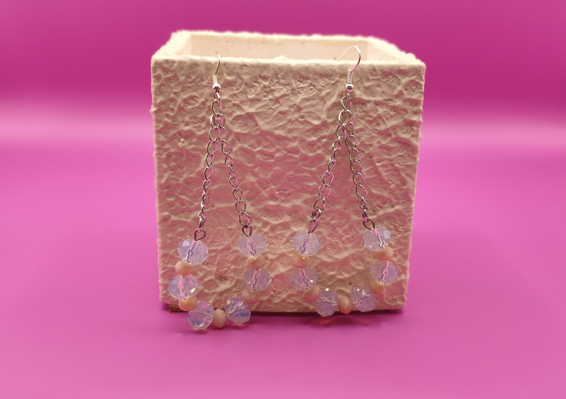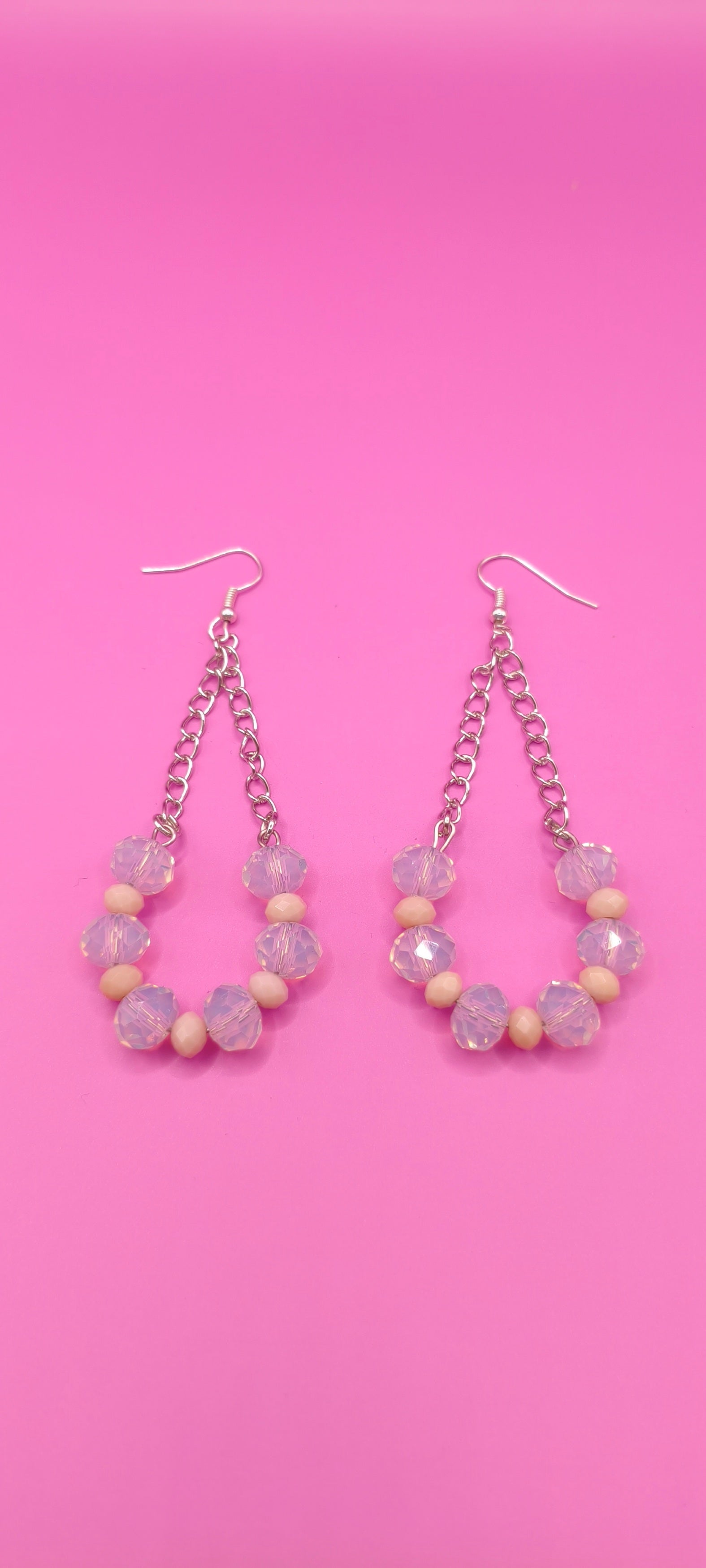 Χειροποίητα κρεμαστά σκουλαρίκια με διάφανες χάντρες και αλυσίδα.